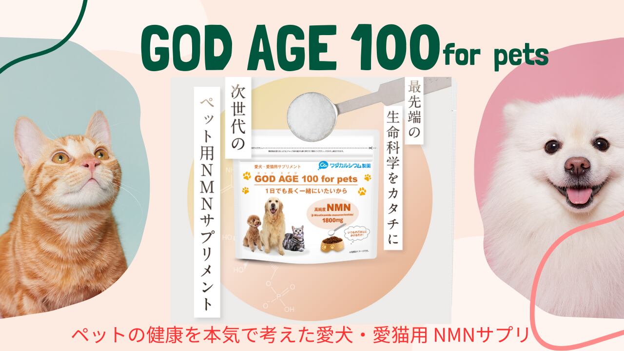 『GOD AGE 100 for pets』は高純度!純度99%以上の日本国内製造NMN配合のペット用サプリメントで、品質には絶対の自信があります!